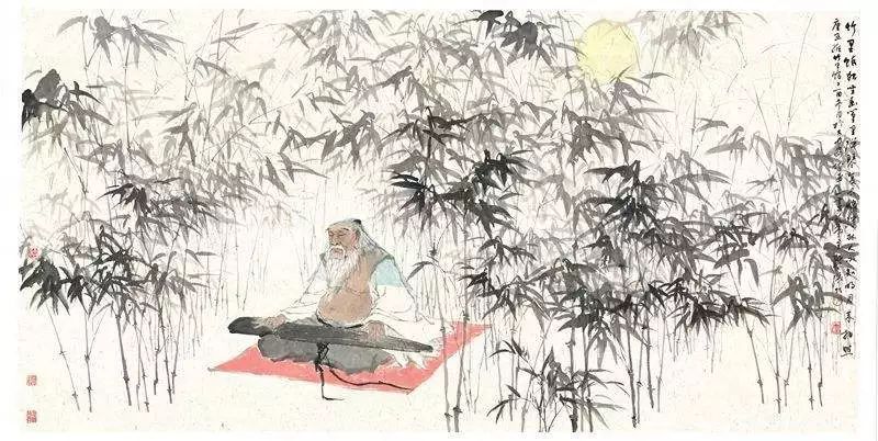 在这两句中,王维用一个”独“,还有一个”复“,便把当时的情形描写得活灵活现,一个人独自坐在竹林里,坐下来弹琴,不时还要放声高歌。