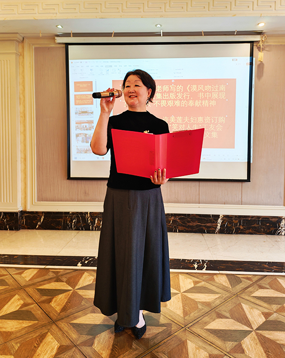 茫棉中学优秀女教师徐敏、郑青梅等翻开此部散文集,如同捧起半生风沙淬炼的珍宝——那些窑洞昏灯下批改作业的剪影、沙暴中守护教室的骆驼刺火堆,此刻都化作书页间蹁跹的南飞雁,掠过国庆的灯笼与红旗,在苏州的粉墙黛瓦上投下戈壁的影。最动人的是,赵梅老师、郑霞老师、朱彩英、王雪玲、周淑英、赵长安、刘海宁、栗娅、朱继烈、沈雅昆等等手捧散文集,认真细致品读时,书脊上“漠风吻过”四个字与苏州刺绣的缠枝纹悄然重叠,他们轻声诵读《茫崖的风》中沙暴吞没矿区的段落,而窗外金鸡湖的波光正温柔荡漾,仿佛在说:这风沙淬炼的文字,终将如大雁南飞,把坚韧的种子播撒在每一寸热土,在园林的漏窗下与父辈隔空对话。
