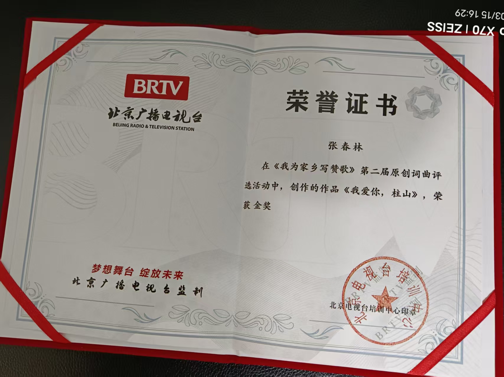 本歌曲在北京电视台“词曲中国”组委会主办的“我为家乡写赞歌”第二届原创词曲征集大赛中,经过初赛、复赛、总决赛三轮直播选拔,专家评委现场点评晋级脱颖而出。自从《我爱你,柱山》这首原创歌曲参加本次大赛以来,共有3000余首原创作品报名参赛角逐,1000余首作品进入复赛环节,最后仅剩下140余首作品晋级到总决赛,通过直播评选的形式,评出金、银、铜奖。为了保证本次赛事公平公正的原则,复赛和决赛均采用面向全国观众全程直播的形式进行现场打分评选,组委会邀请到了中国当代著名词作家车行老师,著名作曲家、中国国际教育电视台文艺中心音乐总监鹏来老师,著名词作家、中国音乐家协会理事、国家一级编审余晋湘老师,中国文化艺术交流协会常务理事、特约专家、中央音乐学院特聘教授王东京老师担任此次活动的评审工作,经过评委认真地评选打分以及点评,最终的获奖名单出炉。《我爱你,柱山》最终脱颖而出,斩获全国金奖。