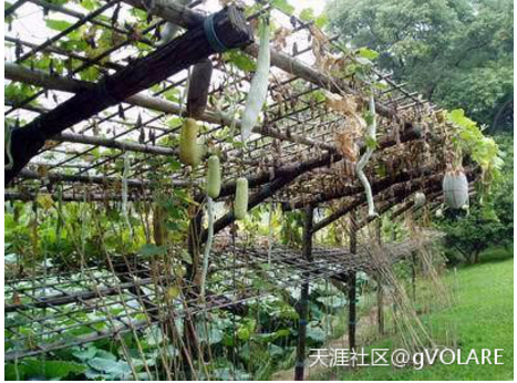以下两照片是在广州流花公园农趣园拍摄,瓜棚下就是莲池。