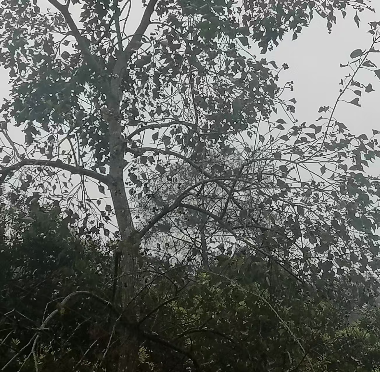 我和一个小伙伴在树下,奔跑嬉戏,欢笑声惊起枝头雀鸟,落叶如彩蝶翩跹。一只疲惫乌鸦在天空中飞翔,一会儿停在乌桕树枝上,哀怨注视着四周,仿佛陪伴着沧桑的老乌桕树,哇哇叫声,犹如月落乌啼,给人一种不祥的预感。