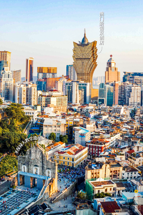 · 澳地城:澳,海边弯曲可以停船的地方,澳门名称源于海湾形似门户的地理特征。这里直接点明澳门的地标性建筑,如赌场酒店、旅游塔等高楼林立的天际线。