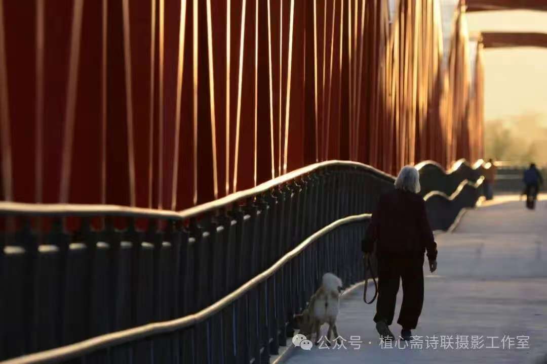 题记:暮色笼长桥,老妪牵犬缓行。余晖拉影,时光凝柔,快门定格,调寄《八声甘州》,记此苍茫一瞬。