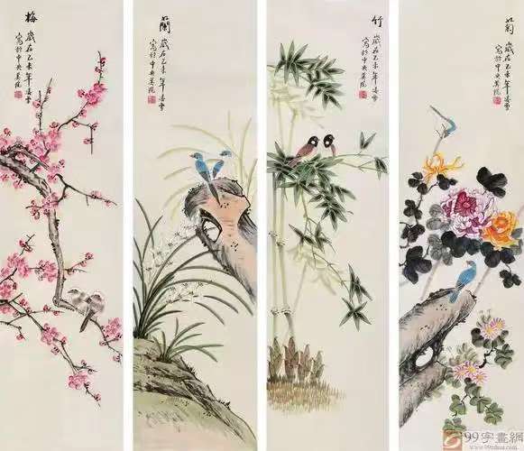 全诗采用传统绝句的四句式结构,每联两句对仗工整。首联以春、秋对仗,下联以夏、冬对仗,季节的循环与意象的交替构成完整的时间序列。平仄上符合近体诗的韵律规范。