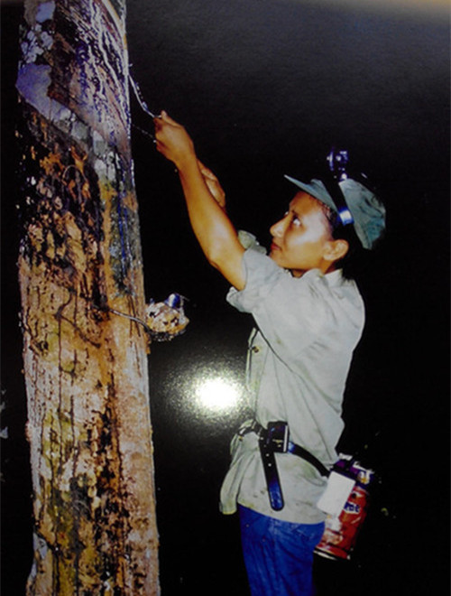 早晨的胶园,我们专心致志埋头割胶,看着洁白如玉的一滴一滴掉进胶杯里胶汁,此刻,它伴随着胶林中小鸟“吱吱”叫的声音,与夏夜蟋蟀“啲啲”叫声,犹如一首首美妙动听的青春圆舞曲,令人兴奋不已。更有趣的是,当你割胶到边界带时,突然间从边界带中逃窜出一只野兔子,左转右窜,吓得惊惶失措,尿流满裤,哭笑不得;时间久了,却成为好朋友。