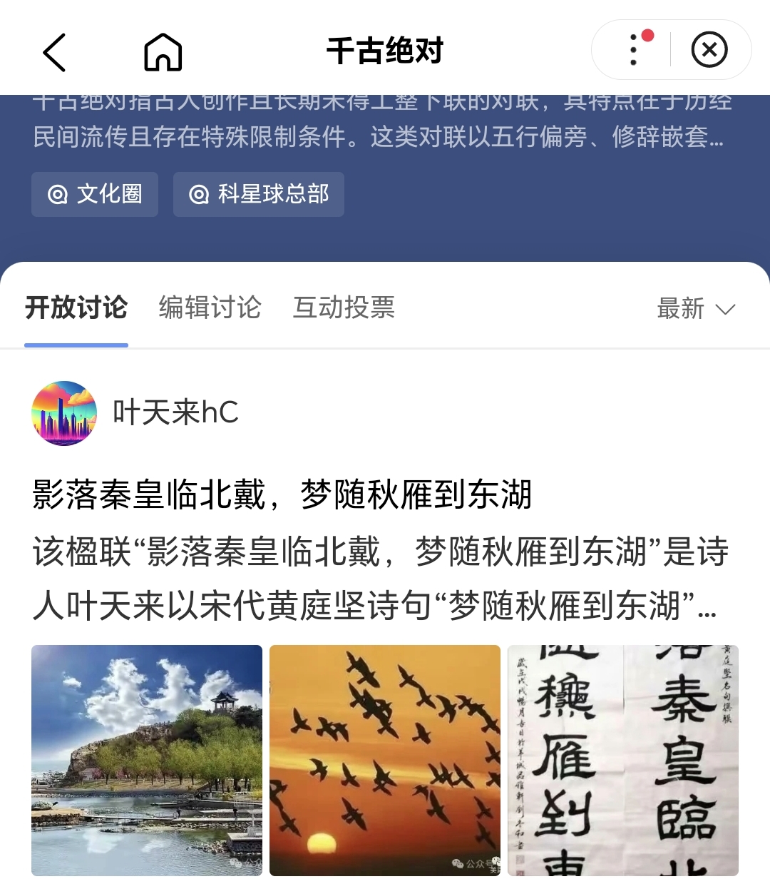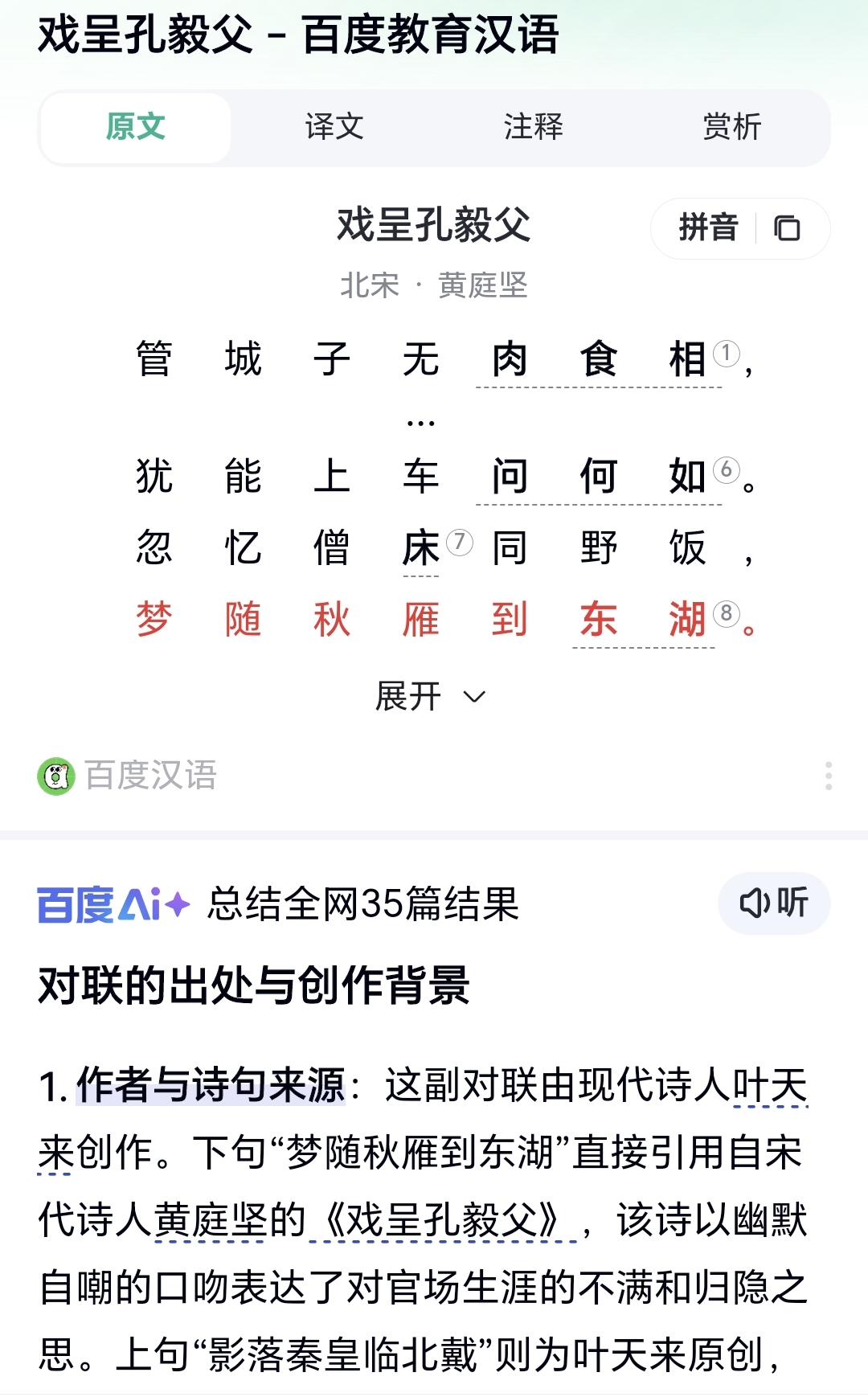 《影落秦皇临北戴,梦随秋雁到东湖》入编《百度教育汉语》
