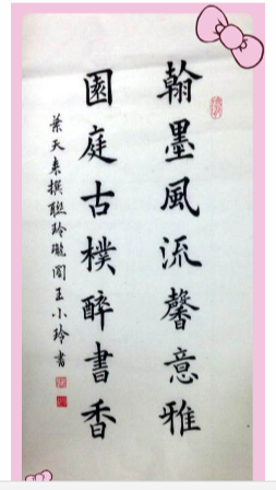 时值2017年,书画家王小玲的工作室命名《玲珑阁》之日,贴出若干图片后在微信群聊公开征诗联,我以上的对联就是应征之作,不难看出,一付小小的七字对联,论格律之工整意境之优雅中标者非我莫属了。
