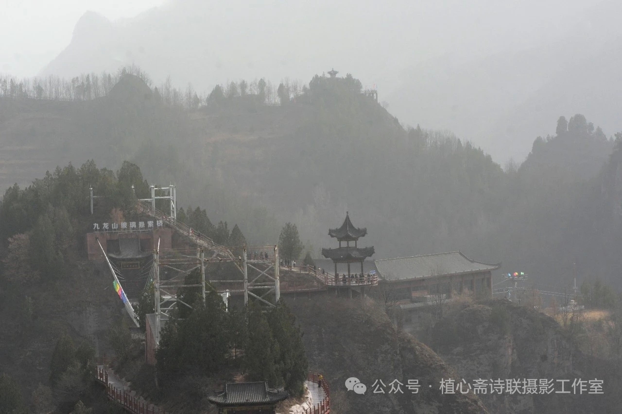 题记:丙午新正,登临宝鸡九龙山。杏花漫坡如雪,迎春绽金,奇峰隐现,云亭缥缈,因填此调。