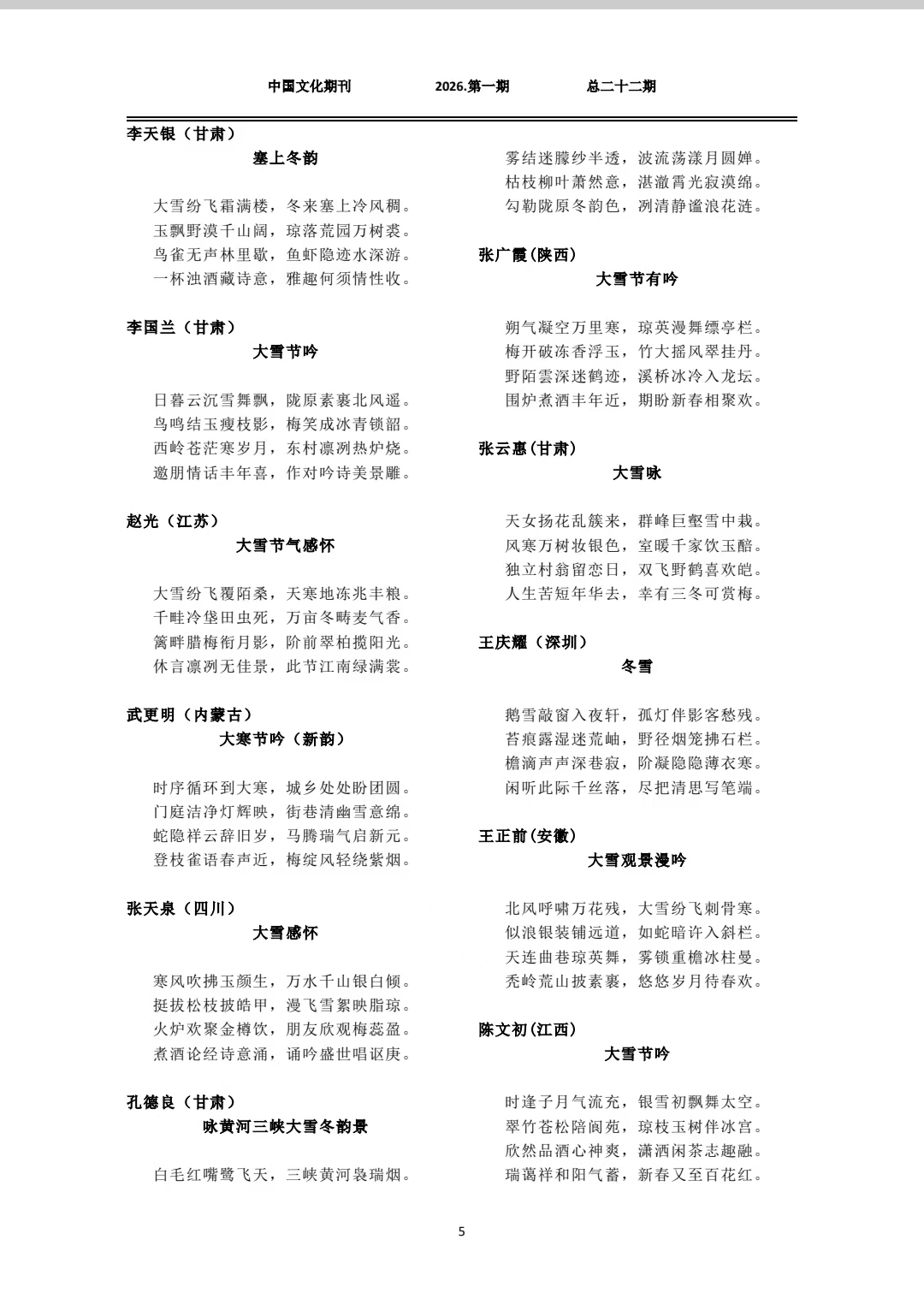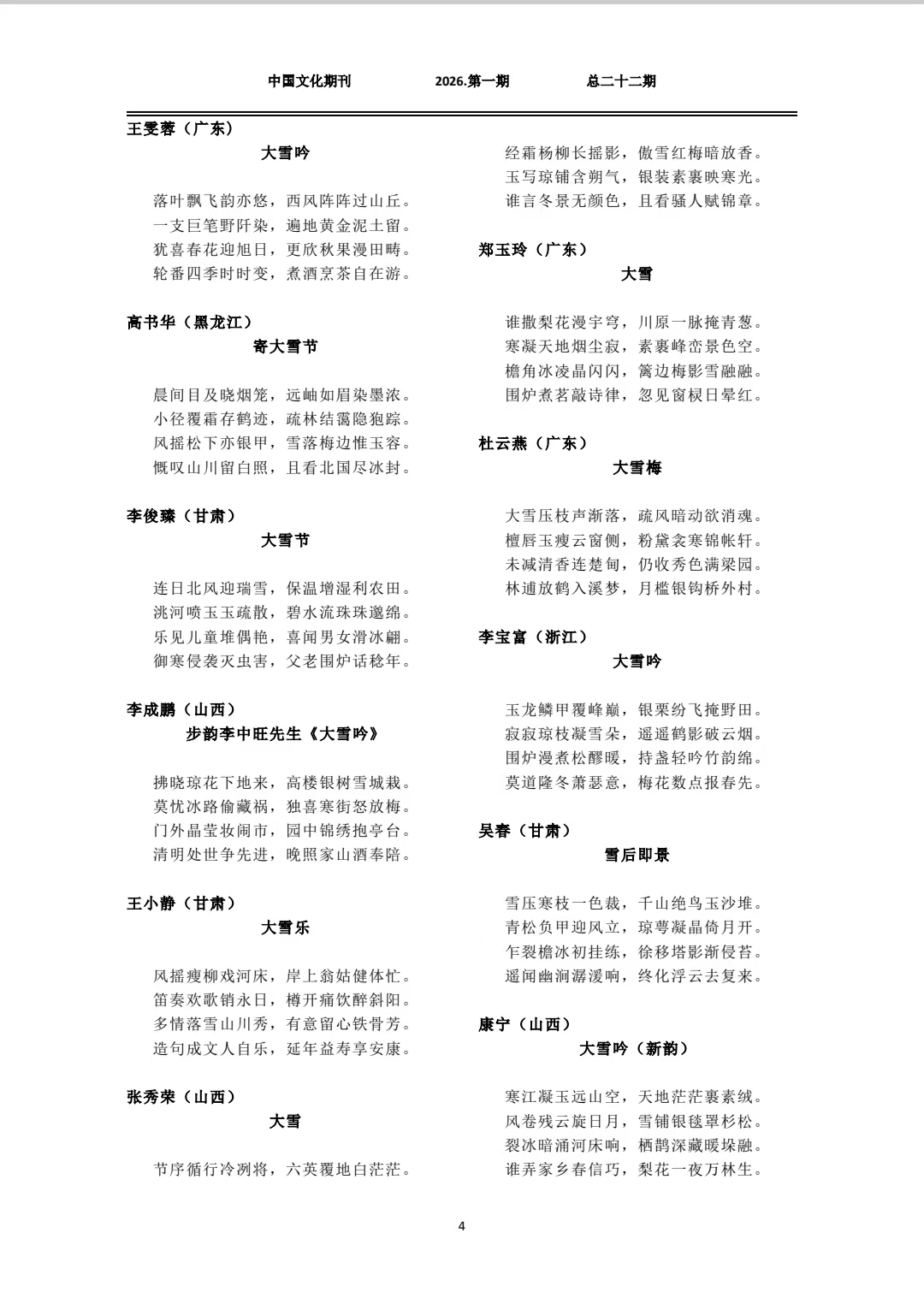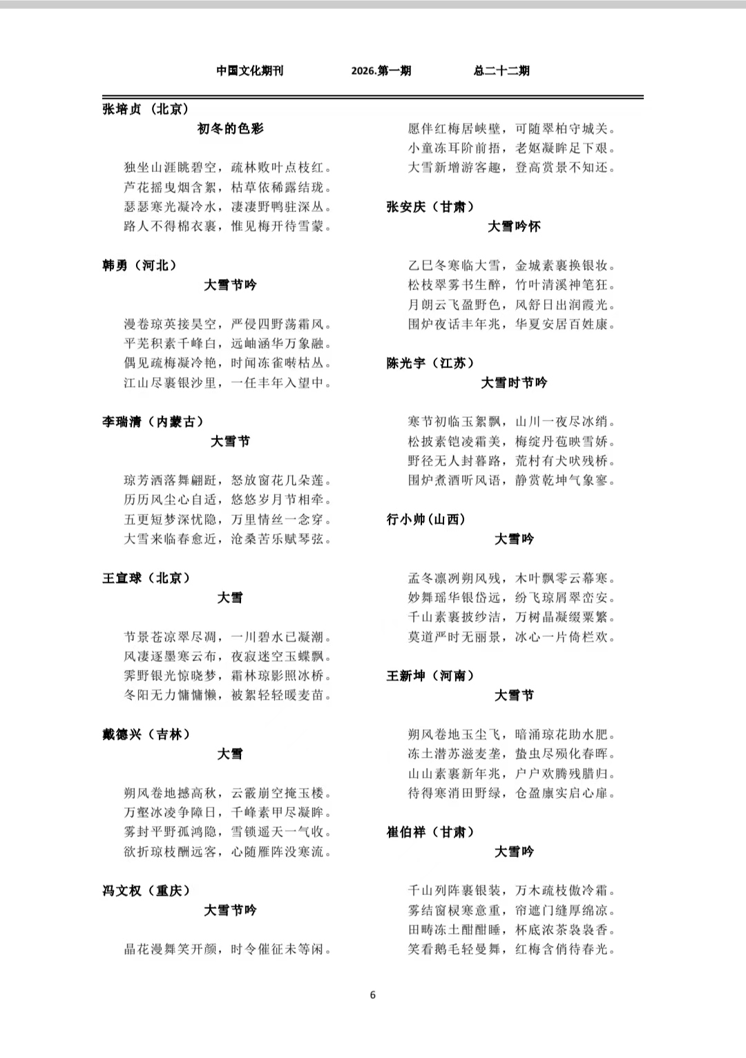 韩秀丽老师的《满庭芳》以“大雪无雪”为线索,串联起景、情、理、事,既保持了传统格律词的雅致韵味,又融入了现代生活的真实质感与家国情怀,意象鲜活,立意高远,景语清丽,情语真挚,于尺幅之间见格局、于传统之中出新意。甘肃酒泉降水量少,风光资源充足,“利用风光” 既指自然景观,又暗指风能、太阳能等清洁能源,一语双关,承载了当代生活内容与时代精神,赋予古典文学新的生命力。