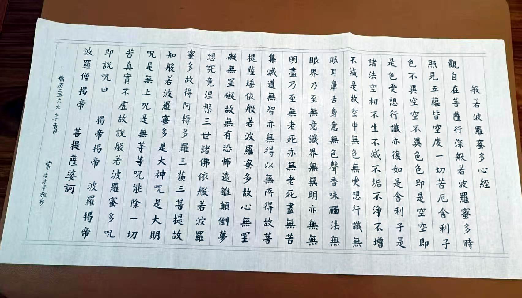 赞赞我太太,一位从未执过毛笔,更从未学过书法,完全从零开始,连业余都不是的医生书写出的《抄心经》,这是她第二次学人抄心经的习作,第一次在上星期二(12.2)。