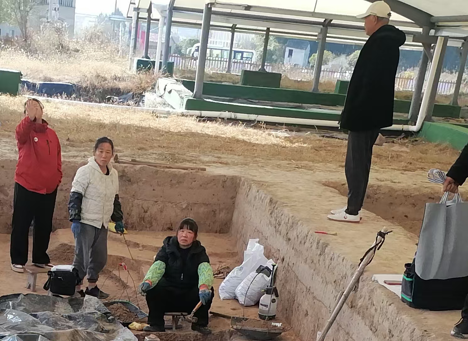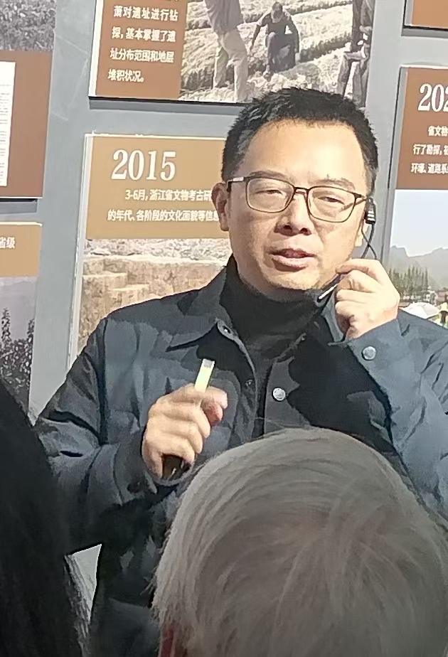 映入眼帘的是,下汤考古工作站,朴素、充满学术气息的外观,西北侧环绕考古发掘区探方保护棚。五十岁左右讲解员,中等身材,和蔼可亲,已经在门口等候了,热情带诗友们走进工作站,讲解语言逻辑思维清晰,兼具诗意与理性,将下汤遗址发现的细节,转化为可感知的体验,唤起四十年前下汤遗址发现,构建清晰的历史图景。