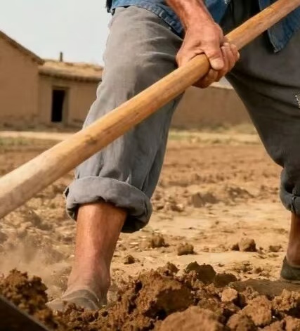 锄头在黄褐色的泥土上高高扬起,在空中划过一道银亮的弧线,带着风声落下,触到的却不再是盘结交错的草根,而是一种异样的坚硬与沉实。一声闷响,不像磕在石上,倒像敲在了一扇厚重无比的门扉上,门后是无边的寂静与时光的尘埃。村民放下锄头,蹲下身来,双膝弯曲,腰部挺直,背部微微拱起,用手拂去浮土,原来是石磨盘,边缘还留着远古匠人反复打磨、已近乎温润的痕。阳光烈烈地照着,石磨盘上的纹路却仿佛吸尽了喧嚣,泛出一种冷冽而幽邃的光。那一刻风似乎也停了,万年的光阴,就凝在这微微一滞的呼吸里。