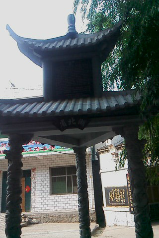 别大寺,过丹江河桥,前行三里而至白浪街。有亭翼然而立,下有一三棱石头矗立中间,乃三省交界之标记。三面分刻“秦”“豫”“鄂”之名,各立碑文以记之。单脚踏石上,另一凌空,张臂造型于飞,谓曰一脚踏三省。后至清代五里长街,青砖绿瓦,民居商铺混居蜿蜒相接。睹之一片灰色清静,绝非现代高楼林立之喧嚣可比,实为古镇未被现代文明染指的最后处女地。居中有“平浪宫”和“钟楼”,古香古色、质朴大方,为国家级重点文物保护单位。将至尽头,有“山陕会馆”可览。