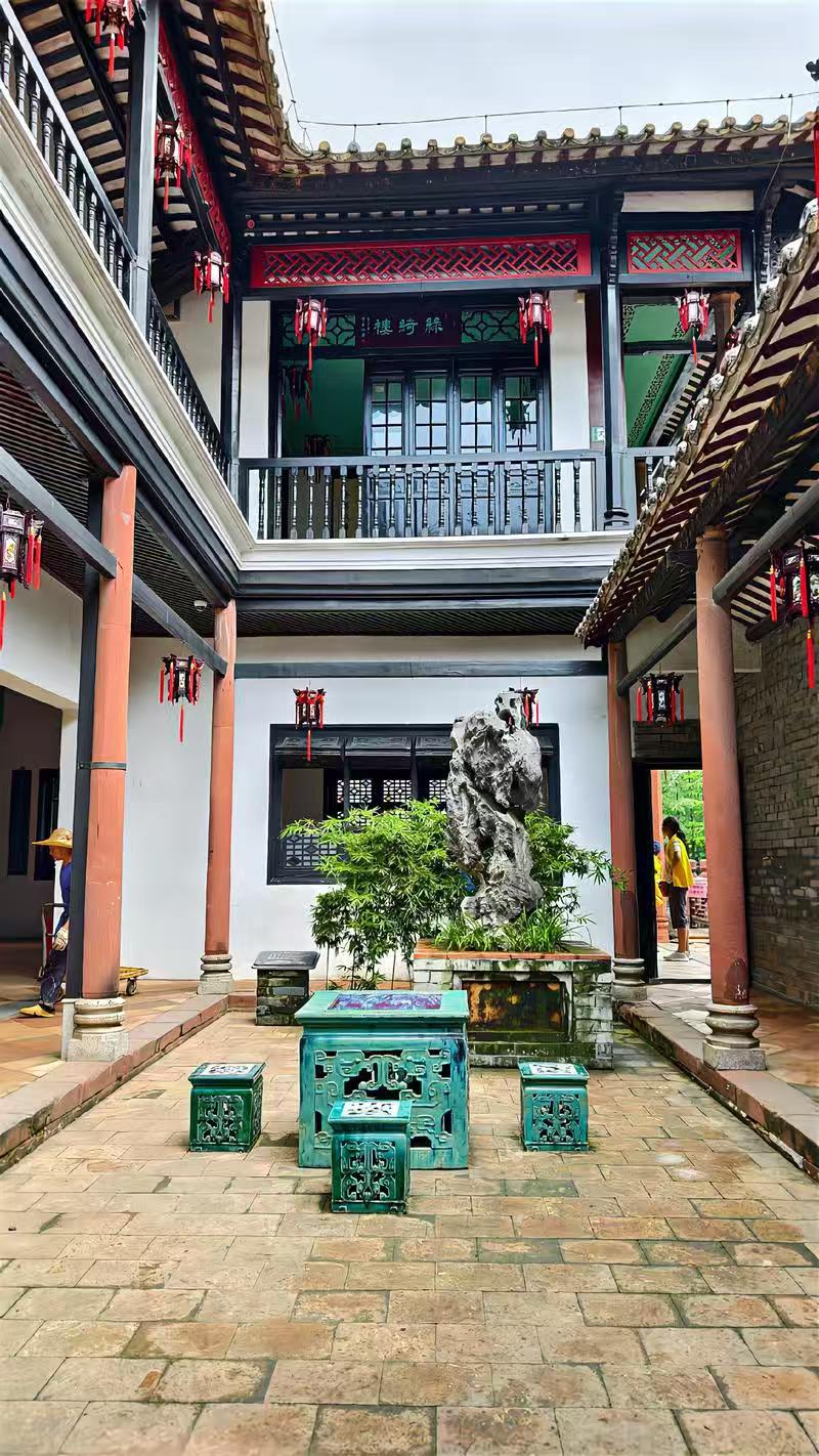 这两句对仗工整,意蕴深远,道出了岭南园林“咫尺山林”的精髓。